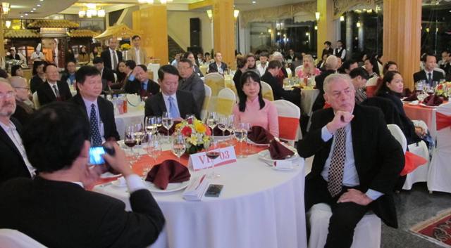 Đại diện lãnh đạo tỉnh và các tổ chức PCP, nhà đầu tư, doanh nghiệp nước ngoài giao lưu tại buổi gặp mặt vào tối 17/1