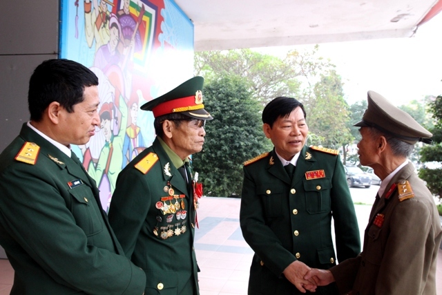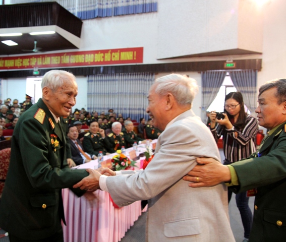 Trung tướng Nguyễn Quốc Thước, nguyên Tư lệnh Quân khu 4 bắt tay với các đồng chí, đồng đội của mình