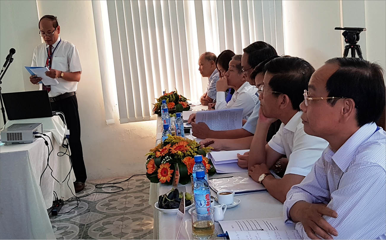 Ứng viên Nguyễn Lương Bảy trình bày đề án trước Hội đồng thi