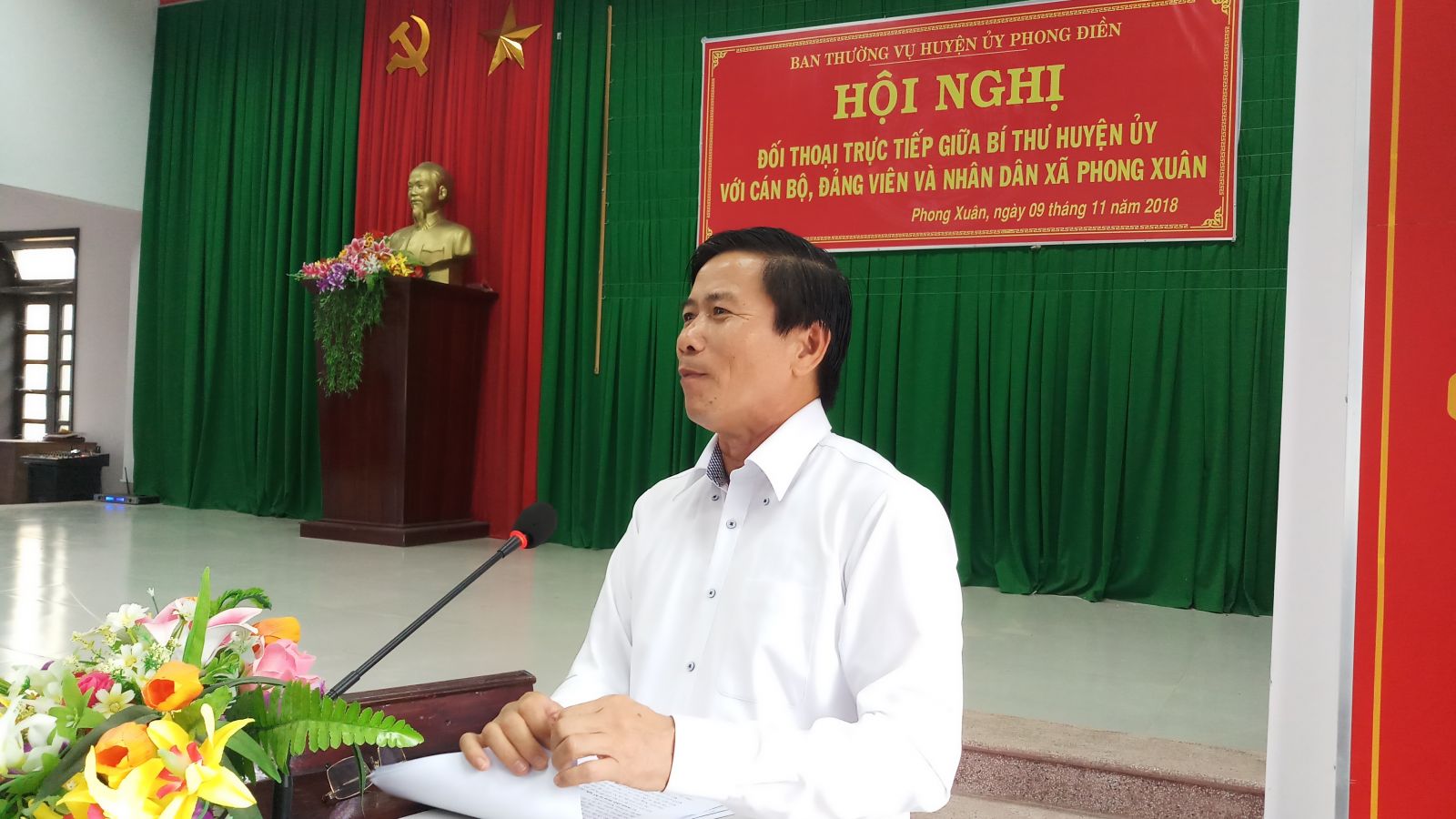 Tại buổi đối thoại, thay mặt Huyện ủy, UBND, ông Trịnh Đức Hùng thông báo một số nét nổi bật của huyện trong thời gian từ đầu năm 2018 đến nay; trong đó nhấn mạnh đến tình hình phát triển kinh tế-xã hội của Phong Xuân. Những công trình trọng đểm trên địa bàn xã đang được triển khai như: đường trục thôn, liên thôn, xây mới phòng học… với kinh phí trên 11 tỷ đồng.