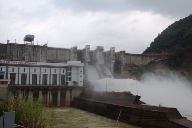 Tại khu vực đập xả thủy điện Hương Điền – một trong những thủy điện đang mở cửa điều tiết nước về hạ du vào từ trưa theo yêu cầu của Ban Chỉ huy PCTT&TKCN tỉnh, hai trong 4 cửa đó là cửa số 2 và 3 đã được mở để xả. Đại diện nhà máy thủy điện này cho hay, mọi hoạt động xả lũ đều được giám sát một cách kỹ càng, theo yêu cầu từ phía UBND tỉnh với tinh thần điều tiết nước trong hồ, để tránh tình trạng mưa to, nước về hồ nhanh phải xả lũ đột ngột với lưu lượng lớn.