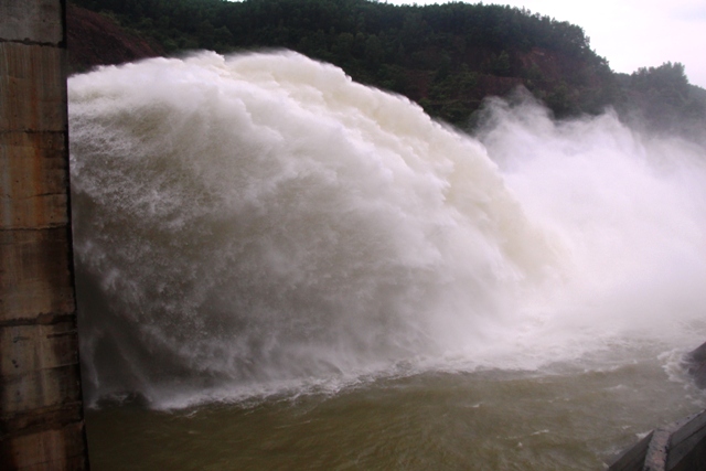 Cận cảnh lượng nước được xả ra từ thủy điện Hương Điền