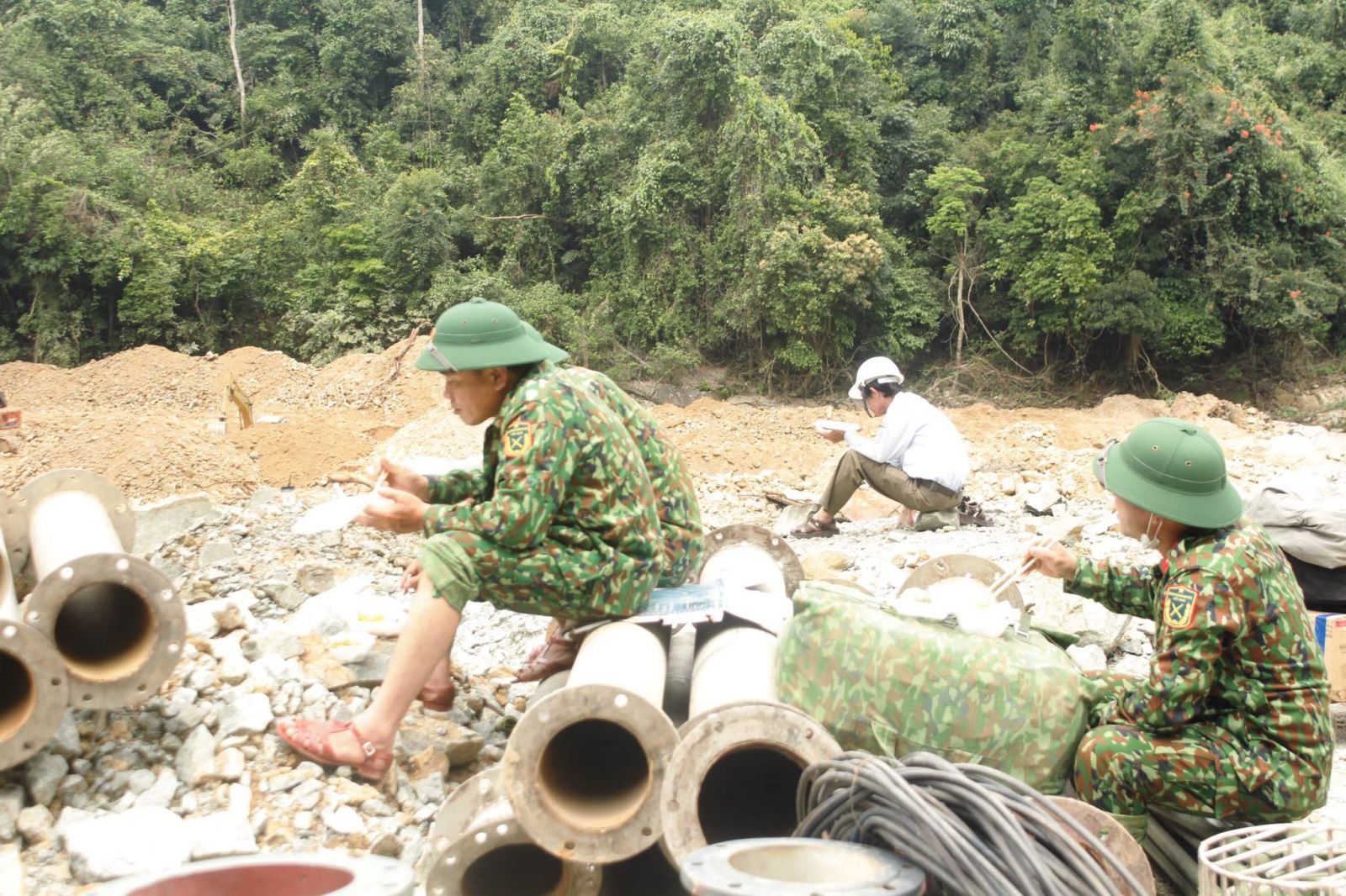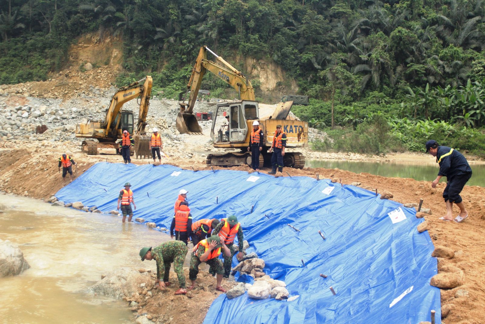 Những ngày qua, 4 máy múc cỡ lớn và máy ủi hoạt động liên tục. Hơn 50 cán bộ, chiến sĩ lực lượng vũ trang cũng vậy, mỗi người một nhiệm vụ từ đóng cọc, khuân đá đắp đê nắn dòng chảy, theo dõi, đến giám sát các vị trí tìm kiếm cho đến điều khiển flycam…, vẫn làm việc “hết công suất” mỗi ngày.
