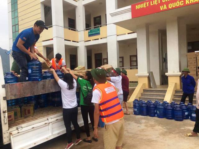 Hội từ thiện HFB vận chuyển nước sạch cứu trợ cho người dân xã Văn Hóa (huyện Tuyên Hóa, Quảng Bình)
