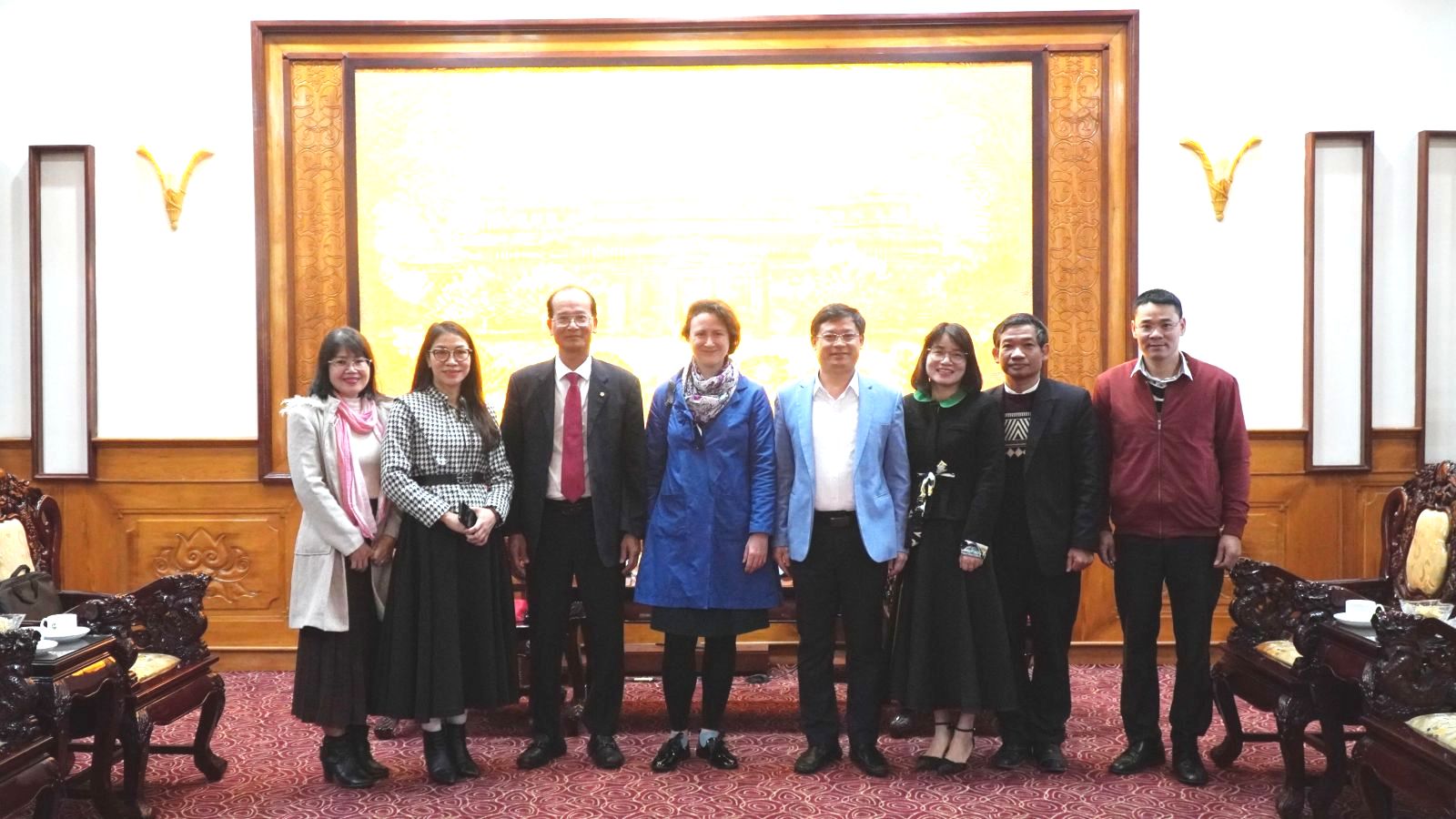 HNN.VN - TS. Amandine Dabat - hậu duệ đời thứ 5 của vua Hàm Nghi và cũng là chuyên gia, nhà nghiên cứu lịch sử của vị vua này từ Pháp trở về Huế, đã đến chào xã giao lãnh đạo UBND tỉnh vào sáng 9/1.