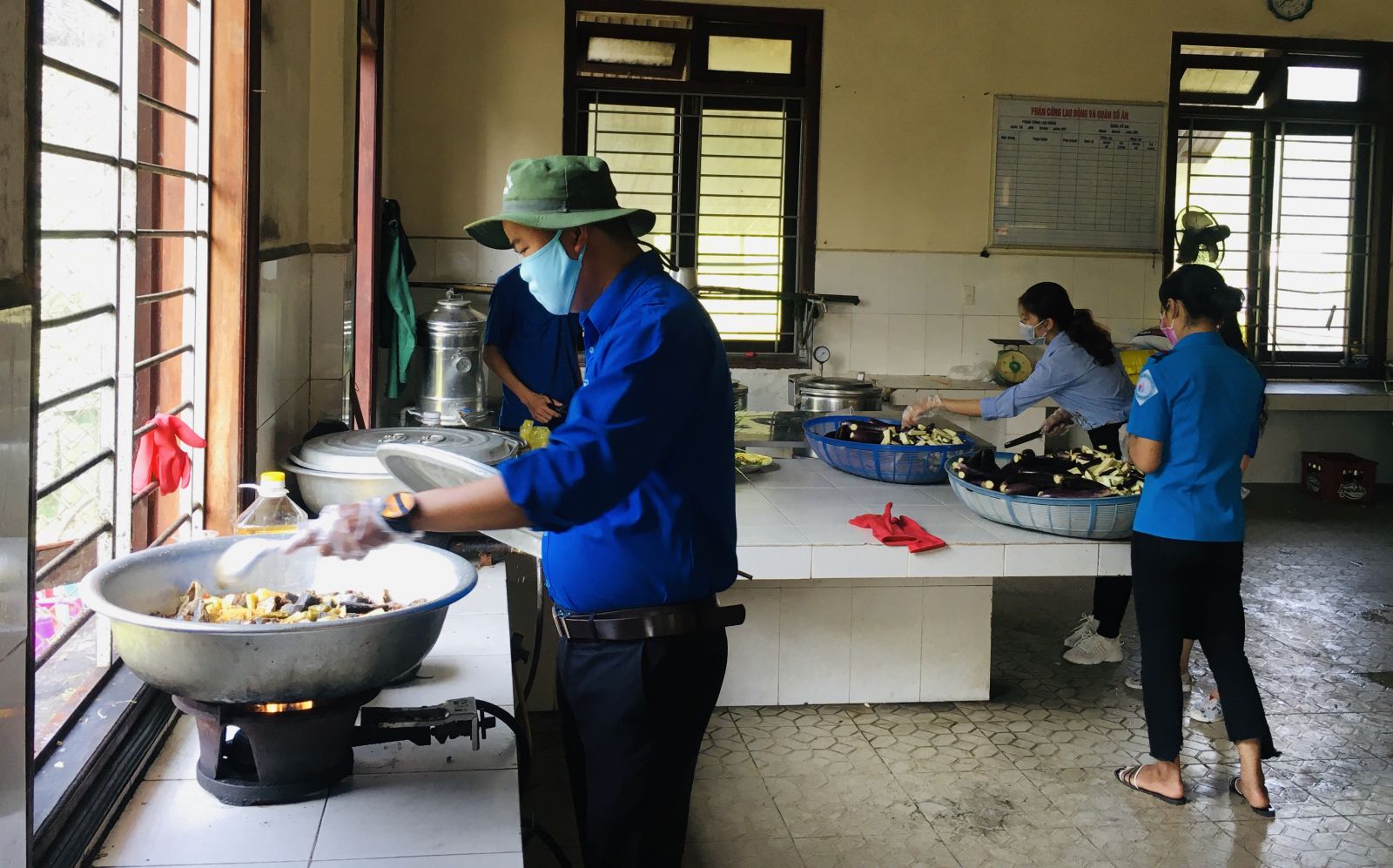 Nhiều đoàn viên thanh niên đã trực tiếp đến các điểm cách ly để giúp đỡ cán bộ, chiến sĩ nấu ăn phục vụ ăn uống cho những người cách ly. Ảnh minh họa: Q.T