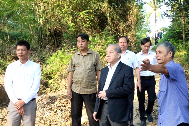 Phó Bí thư Thường trực Tỉnh ủy Phan Ngọc Thọ (hàng trên, thứ hai từ phải sang) khảo sát việc lãnh, chỉ đạo xây dựng nông thôn mới ở Hương Phú