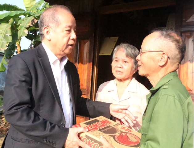 Thăm hỏi, động viên gia đình ông Hồ Văn Tao (hộ cận nghèo thôn Phú Nam), Phó Bí thư Thường trực Tỉnh ủy Phan Ngọc Thọ chia sẻ với những khó khăn hiện tại mà gia đình gặp phải. Tuy là hộ cận nghèo, nhưng gia đình cũng phải luôn nỗ lực vươn lên; xây dựng tinh thần đoàn kết, vận động người dân trong thôn tiếp tục đồng hành với cấp ủy, chính quyền địa phương và hệ thống chính trị thực hiện thắng lợi các mục tiêu, chỉ tiêu, nhiệm vụ đề ra.