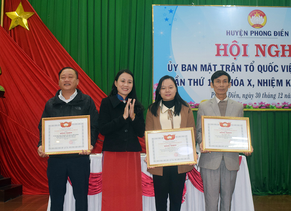Tại hội nghị, UBMTTQ Việt Nam tỉnh đã tặng bằng khen cho 2 tập thể, 3 cá nhân có thành tích xuất sắc trong công tác Mặt trận năm 2022. UBMTTQ Việt Nam huyện Phong Điền tặng giấy khen cho 3 tập thể và 5 cá nhân có thành tích xuất sắc trong công tác Mặt trận năm 2022.