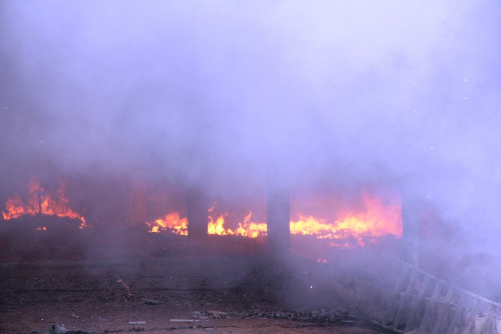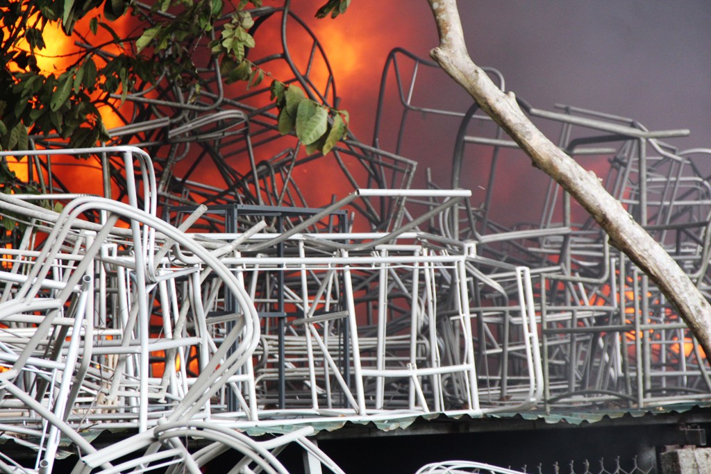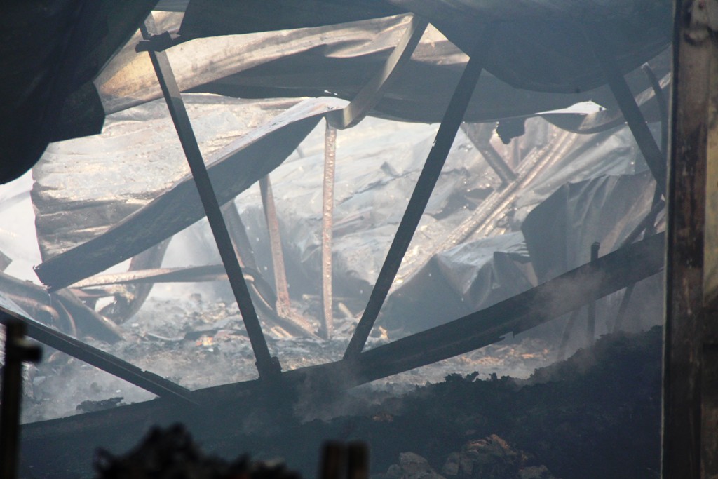 Mái tôn sập hoàn toàn và bị lửa thiêu rụi