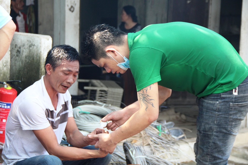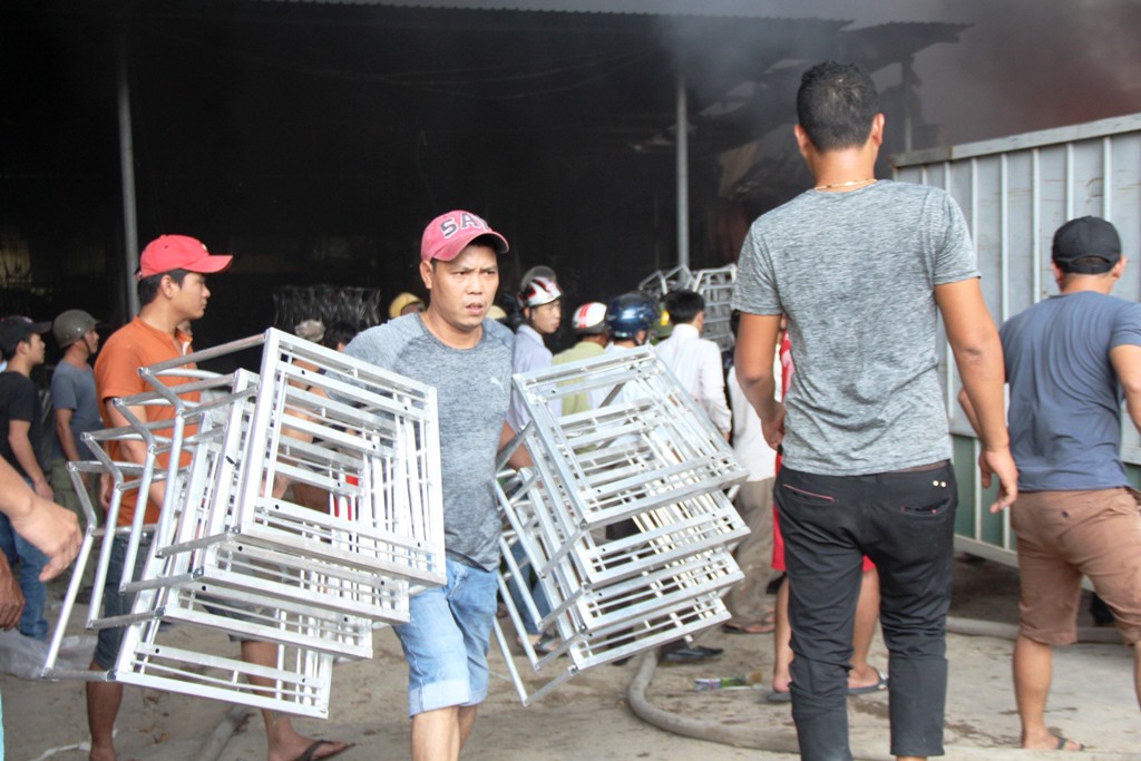 Nhiều người dân hỗ trợ công ty đưa những sản phẩm chưa bị cháy ra ngoài