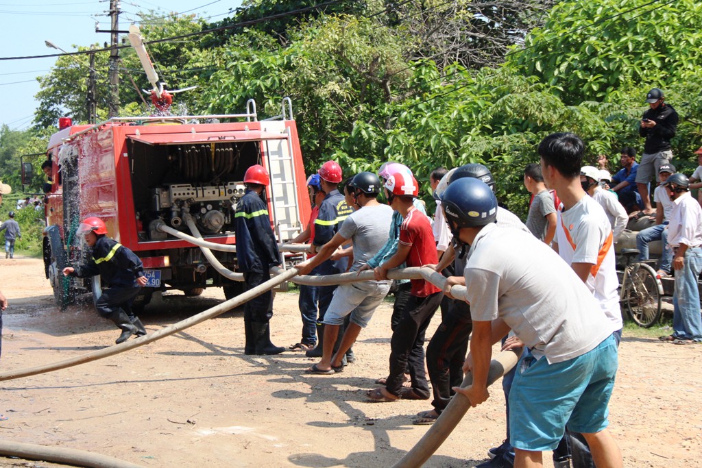 Nhiều người dân, cảnh sát PCCC cùng nhau hỗ trợ chữa cháy