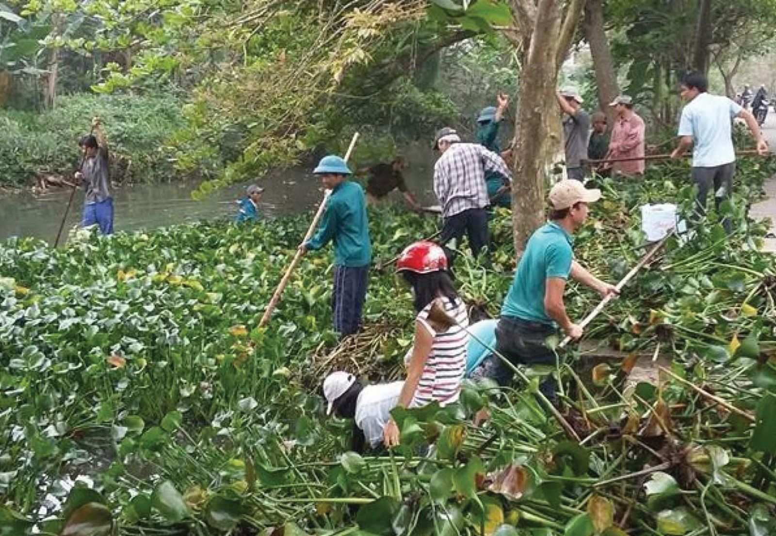 Các đoàn thể ở phường Hương Sơ tham gia dọn dẹp vệ sinh môi trường