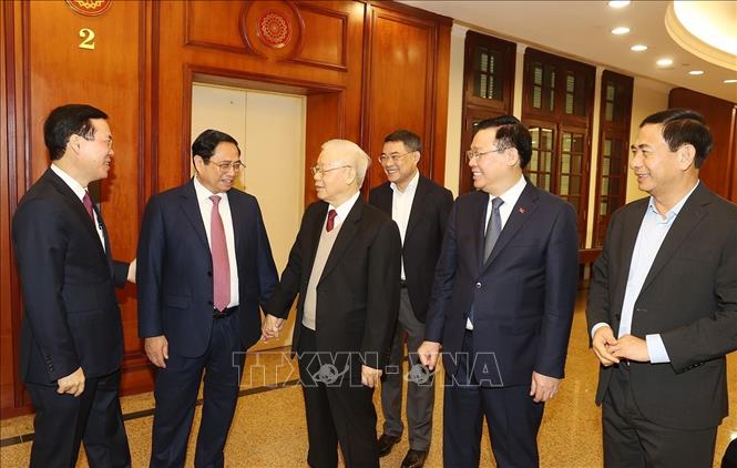 Sáng 6/2/2023, tại Trụ sở Trung ương Đảng, Tổng Bí thư Nguyễn Phú Trọng, Thủ tướng Phạm Minh Chính, Chủ tịch Quốc hội Vương Đình Huệ, Thường trực Ban Bí thư Võ Văn Thưởng và Quyền Chủ tịch nước Võ Thị Ánh Xuân chủ trì Hội nghị gặp mặt các đồng chí nguyên lãnh đạo cấp cao của Đảng, Nhà nước do Bộ Chính trị, Ban Bí thư tổ chức.