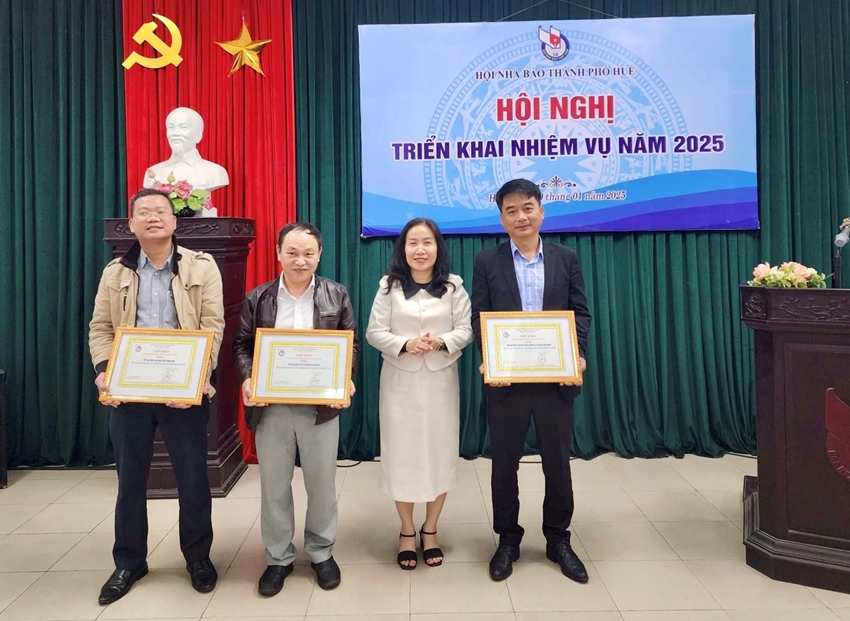 Dịp này, Hội Nhà báo thành phố Huế đã khen thưởng cho 3 tập thể, 5 cá nhân vì đã có thành tích xuất sắc về nghiệp vụ và xây dựng Hội.