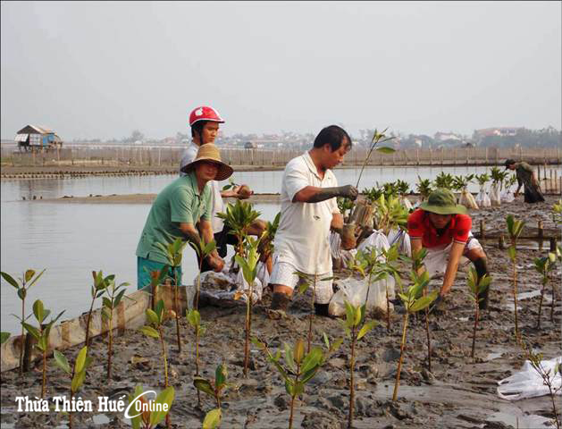 Tiếp đó, một số dự án về trồng RNM được các đơn vị, tổ chức quốc tế hỗ trợ thực hiện, như dự án “Tăng cường RNM nhằm thích ứng với biến đổi khí hậu (BĐKH) và bảo tồn đa dạng sinh học vùng đầm phá ven biển Thừa Thiên Huế” do WWF tài trợ (2012-2014) đã gieo ươm và trồng được hơn 23.000 cây ngập mặn ở khu vực tam giác xung yếu cửa sông Hương - phá Tam Giang - cửa biển Thuận An và vùng rú Chá. Dự án “Thích ứng với BĐKH và quản lý tài nguyên nước cấp cộng đồng ở Thừa Thiên Huế” do Tổng cục Hợp tác phát triển Hà Lan (CSRD) tài trợ năm 2011, đã trồng hơn 1ha RNM ở cồn Tè, xã Hương Phong. Các dự án đều có tỷ lệ cây sống trung bình đạt từ 75- 80% và đang sinh trưởng, phát triển tốt.