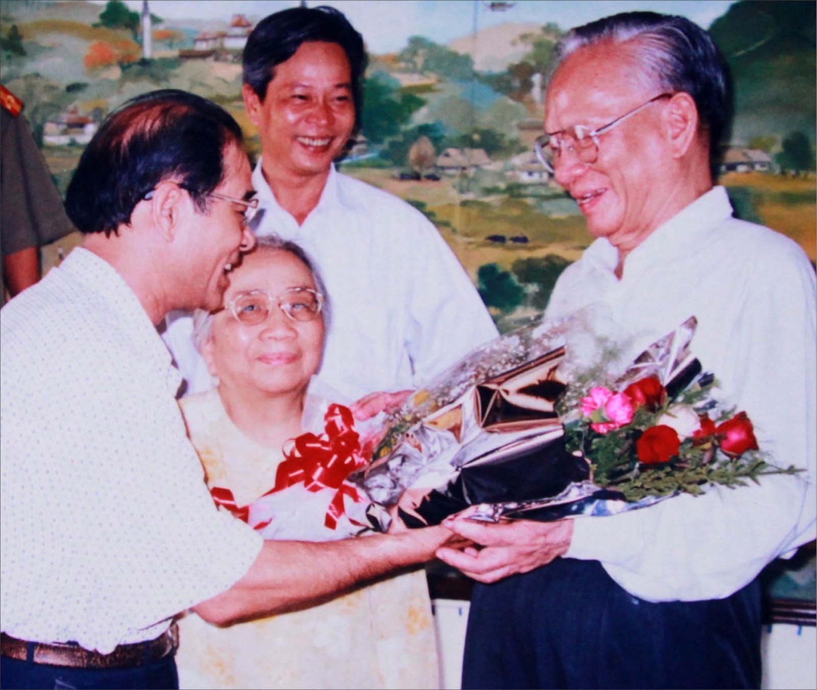 Gia đình Đại tướng Lê Đức Anh trong một lần đón đoàn khách từ Thừa Thiên Huế ra thăm. Ảnh: Chụp lại tư liệu lưu ở Văn phòng Tỉnh ủy