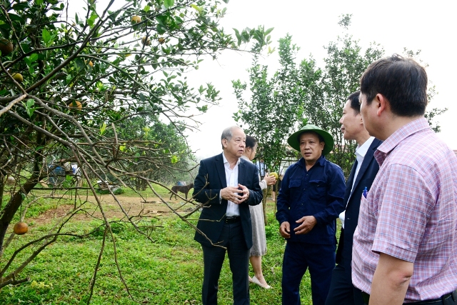 Phó Bí thư Thường trực Tỉnh ủy Phan Ngọc Thọ và đoàn công tác của Tỉnh ủy thăm mô hình trồng cây ăn quả theo quy trình VietGaP