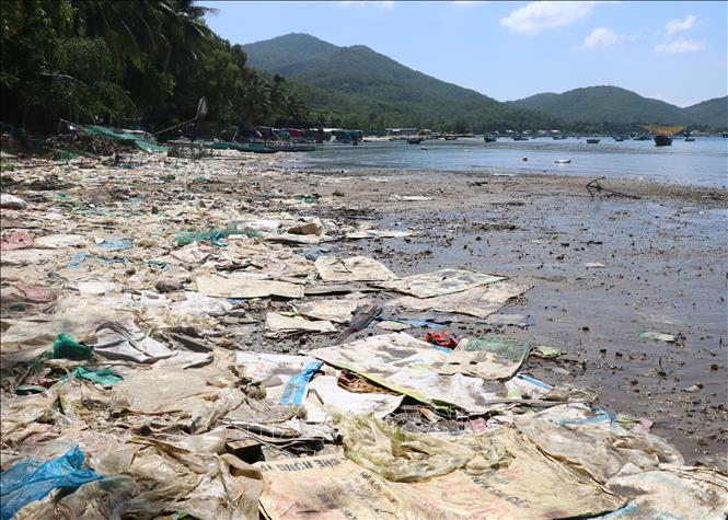 Rác thải nilon, thùng xốp, nhựa phủ kín bãi Vũng Chào, thôn Dân Phú 1, thị xã Sông Cầu, tỉnh Phú Yên