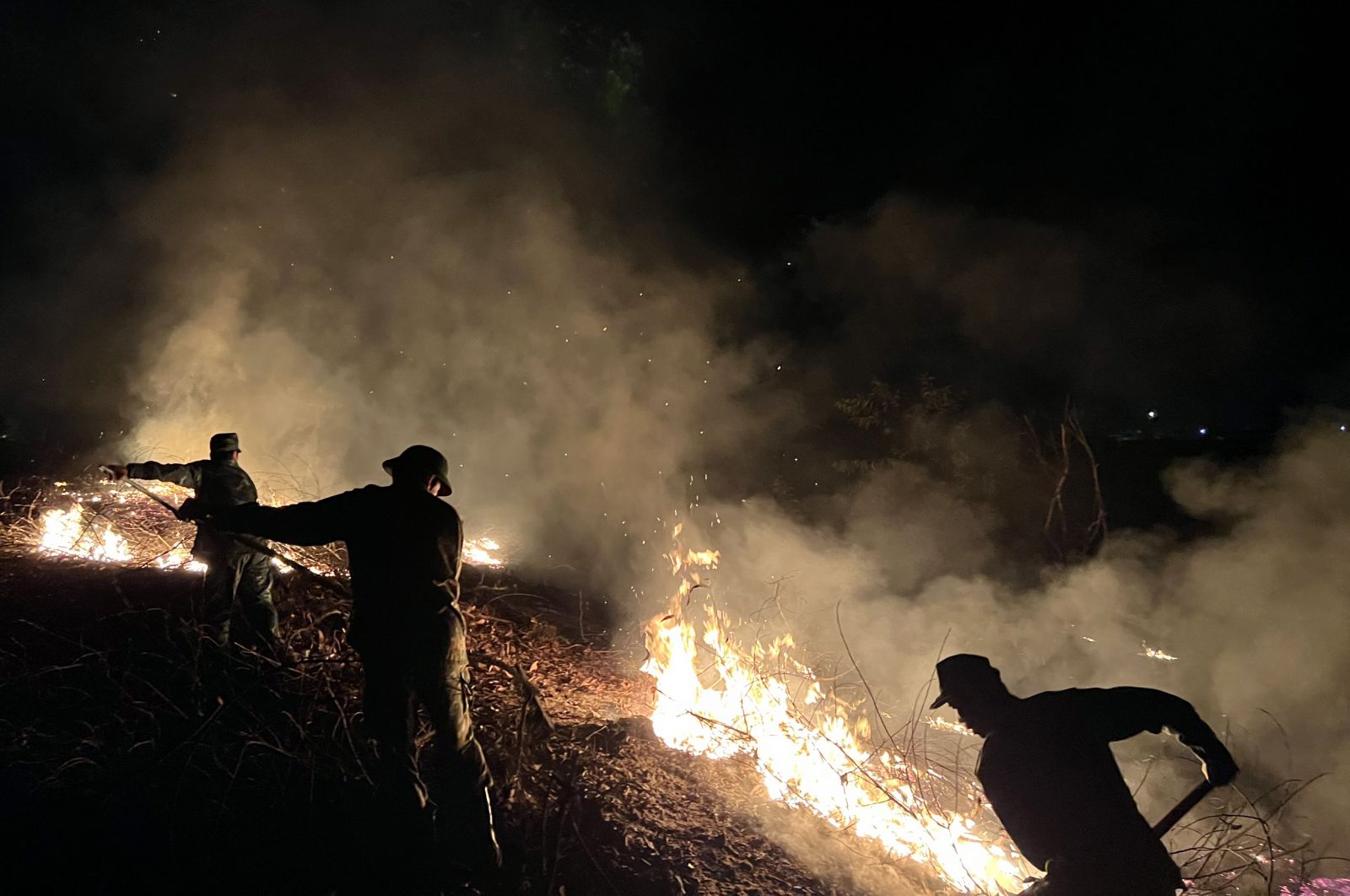 Cán bộ, chiến sĩ Bộ đội Biên phòng và các lực lượng đã chia thành các tổ, phát đường cắt lửa, khoanh vùng, khống chế đám cháy.