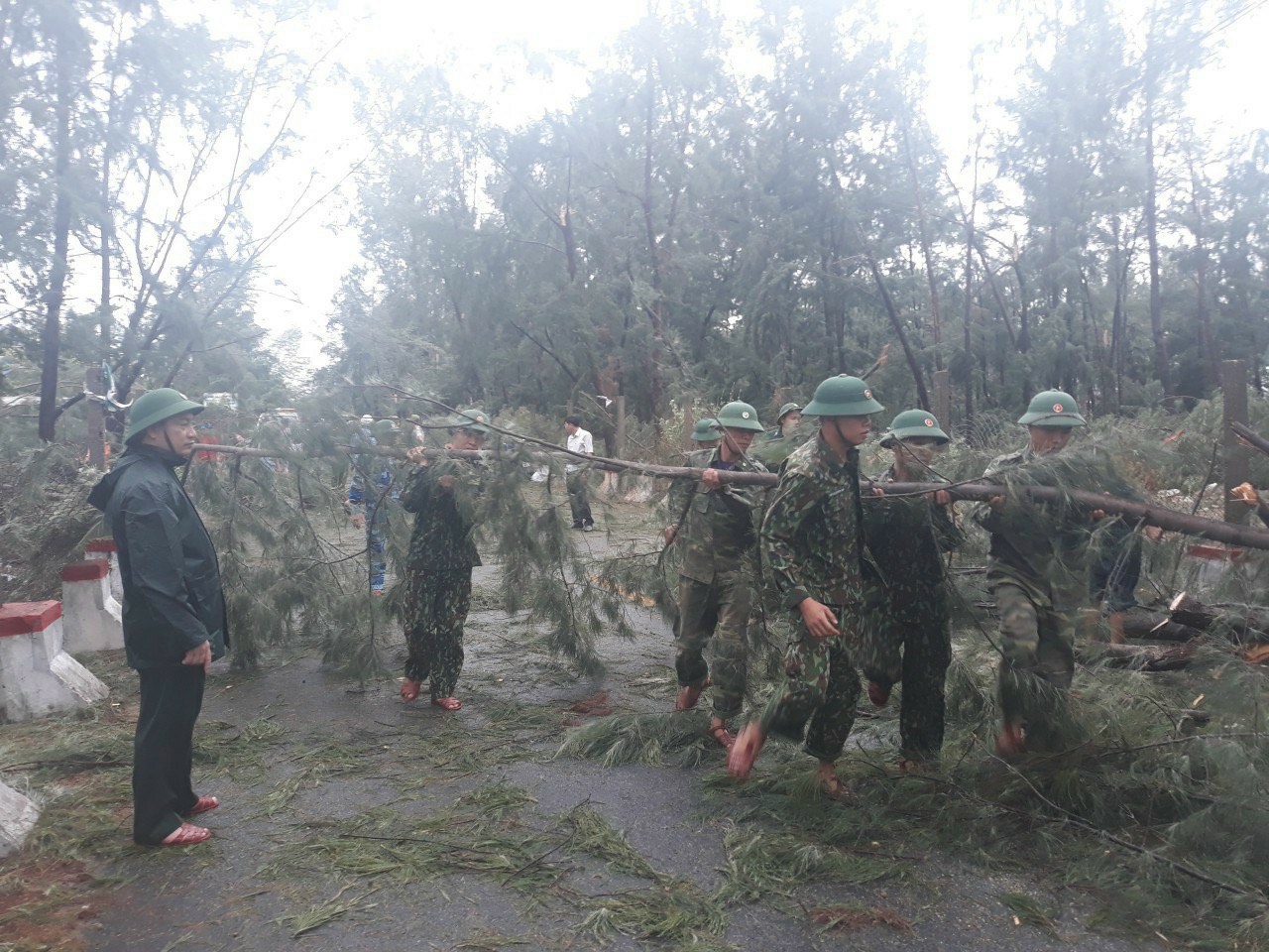 Cụ thể, khu rừng dương phòng hộ bảo vệ đập Hoà Duân có độ tuổi từ 15 năm đến 20 năm đã bị gió thổi làm gãy rạp và tắc tuyến giao thông Quốc lộ 49B đoạn đi qua đây. Đồn Biên phòng Cửa khẩu Cảng Thuận An và Hải đội 2 Bộ đội Biên phòng tỉnh đã huy động 150 cán bộ, chiến sĩ khẩn trương có mặt tại hiện trường để dọn dẹp, giải phóng những cây đổ, đảm bảo an toàn giao thông.