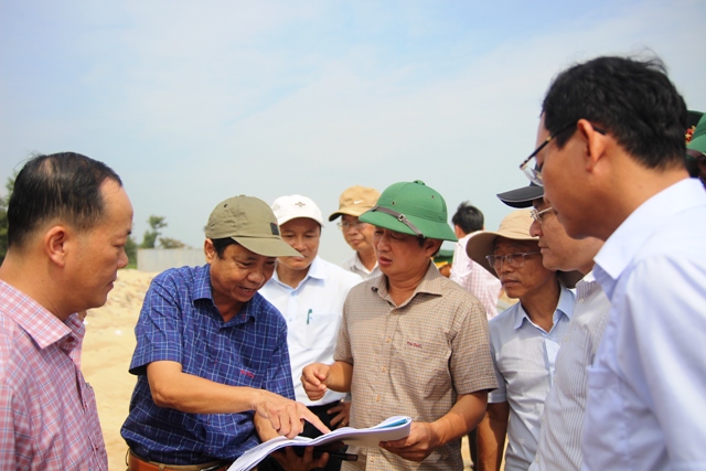 Bí thư Tỉnh ủy Lê Trường Lưu và các sở, ban, ngành trong lần kiểm tra các dự án trọng điểm ven biển trên địa bàn tỉnh