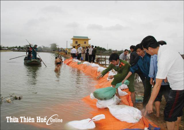 Lực lượng công an, bộ đội được huy động cứu đê ở thị trấn Sịa