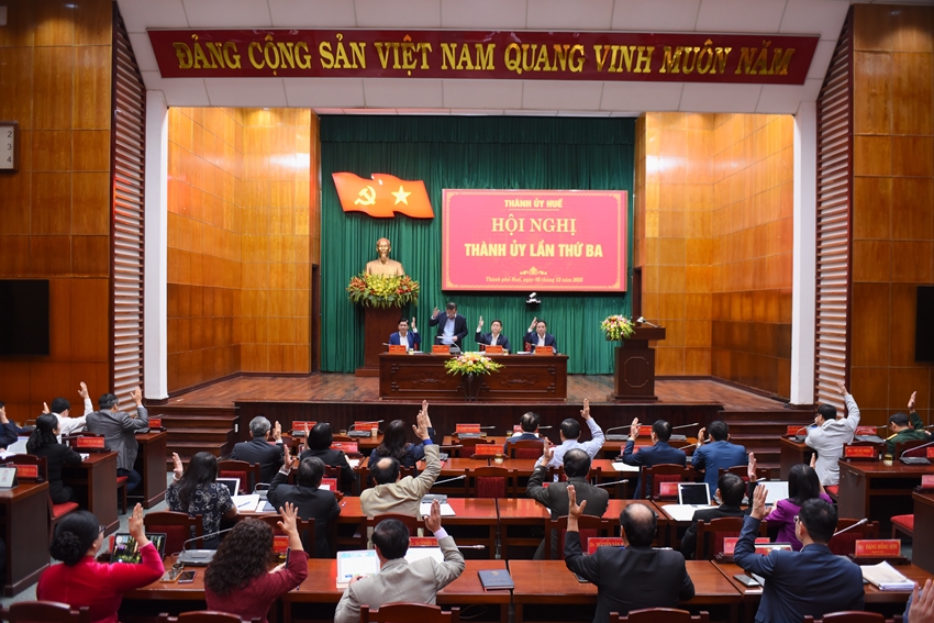 Bí thư Thành ủy Nguyễn Đình Trung đề nghị các đại biểu bám sát báo cáo, phân tích khách quan, toàn diện kết quả đạt được; tập trung chỉ ra các hạn chế, nguyên nhân và đề xuất nhiệm vụ, giải pháp mang tính đột phá để thực hiện thắng lợi nhiệm vụ năm 2026, năm đầu triển khai Nghị quyết Đại hội Đảng bộ thành phố lần thứ XVII, tạo nền tảng quan trọng cho cả nhiệm kỳ 2025 - 2030, đưa TP. Huế phát triển nhanh, bền vững trong giai đoạn mới.