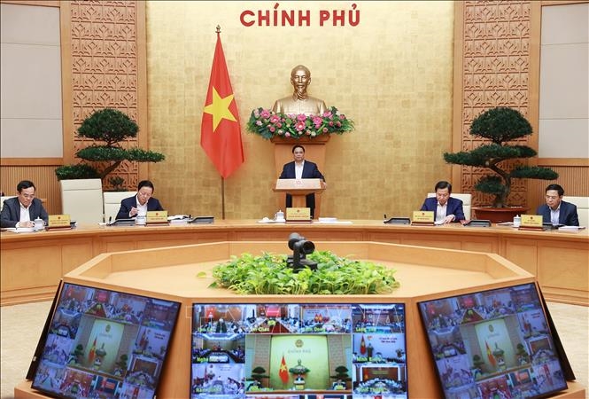 | Thủ tướng Phạm Minh Chính chủ trì Hội nghị trực tuyến Chính phủ với địa phương. Ảnh: Dương Giang/TTXVN |