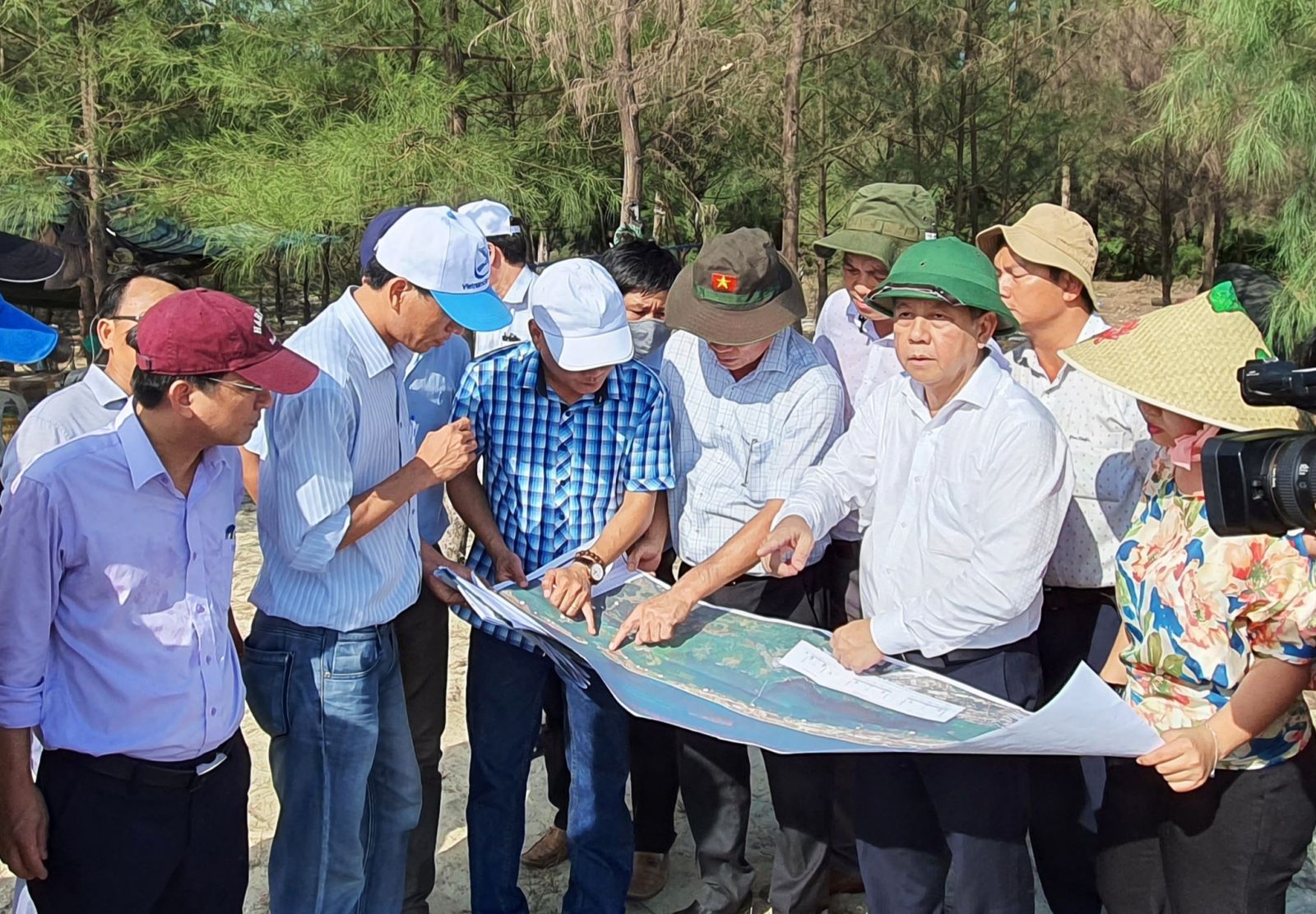 Chủ tịch UBND tỉnh Phan Ngọc Thọ khảo sát tại điểm dự kiến xây cầu vượt cửa biển Thuận An nối tuyến đường ven biển