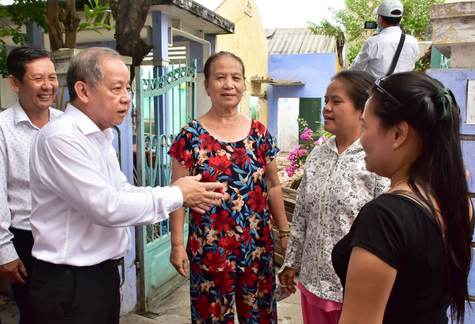 Chủ tịch UBND tỉnh Phan Ngọc Thọ thăm hỏi, động viên những người dân sống ở khu vực Eo Bầu sớm trả lại mặt bằng cho di tích