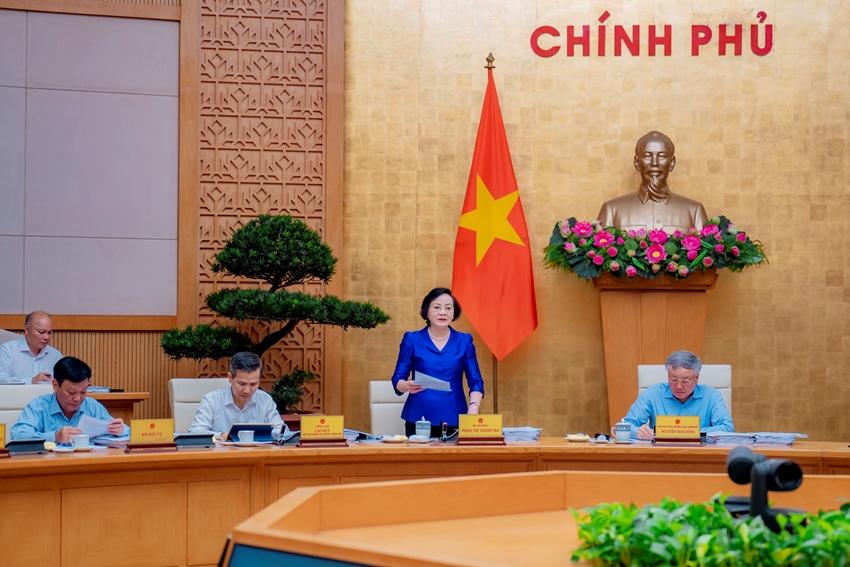 | Bộ trưởng Bộ Nội vụ - Phó Chủ tịch Hội đồng thẩm định Đề án Phạm Thị Thanh Trà trình bày báo cáo thẩm định. Ảnh: Ngọc Minh |