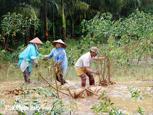 Sáng 14/10, tại các địa phương Phong Điền, Phú Vang, Phú Lộc, mưa lớn cùng gió lốc làm nhiều nhà dân bị tốc mái, bị ngập và một số diện tích hoa màu bị ảnh hưởng. Tại xã Phong Sơn (huyện Phong Điền), bà con nông dân đang tập trung thu hoạch diện tích sắn bị ngập. Toàn xã Phong Sơn có 280ha sắn, đến thời điểm hiện tại đã thu hoạch được 50% diện tích. Ông Nguyễn Bá Nam, Bí thư Đảng ủy xã Phong Sơn cho hay: “12 ha sắn bị ngập chủ yếu tập trung vùng thấp trũng, thiệt hại hoàn toàn”.
