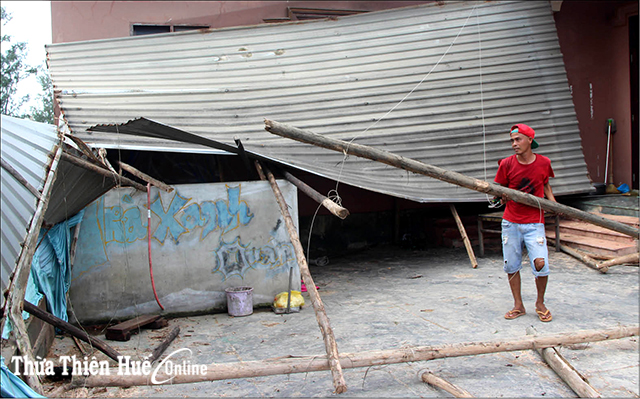Chiều 14/10, tại huyện Phú Vang, chính quyền địa phương, cùng người dân tiến hành dựng lại nhà cửa. UBND huyện Phú Vang đã chỉ đạo UBND xã Phú Thuận phối hợp với Hải đội 2 Bộ đội Biên phòng tỉnh tìm kiếm người mất tích.