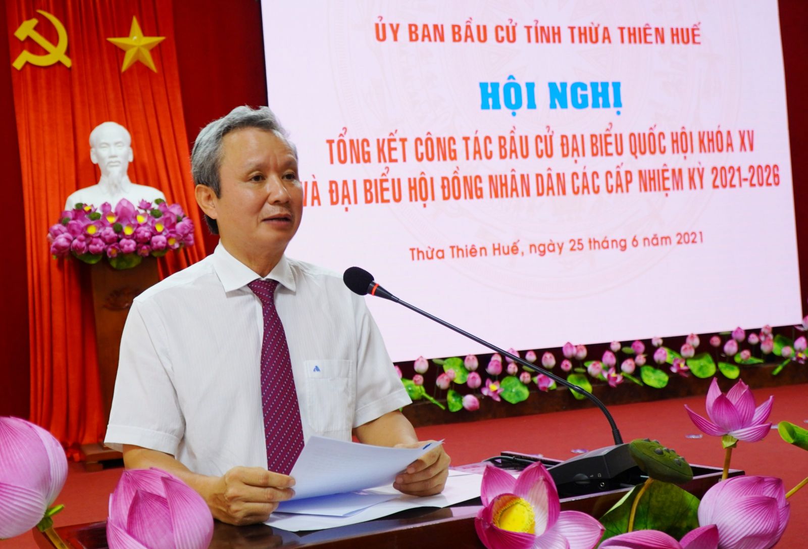 Phát biểu tại hội nghị, UVTW Đảng, Bí thư Tỉnh uỷ, Chủ tịch HĐND tỉnh, Chủ tịch UBBC tỉnh Lê Trường Lưu biểu dương sự nỗ lực, trách nhiệm cao của các cấp uỷ Đảng, chính quyền các cấp, UBBC các cấp, các ban, ngành, Mặt trận Tổ quốc, đoàn thể, lực lượng vũ trang và nhân dân trong tỉnh đã góp sức làm nên thành công của cuộc bầu cử. Đồng thời chúc mừng các vị đại biểu trúng cử ĐBQH khoá XV và HĐND các cấp nhiệm kỳ 2021 - 2026 và tin tưởng rằng các vị đại biểu sẽ hoàn thành tốt nhất trách nhiệm của mình trên cương vị là người đại biểu của Nhân dân.