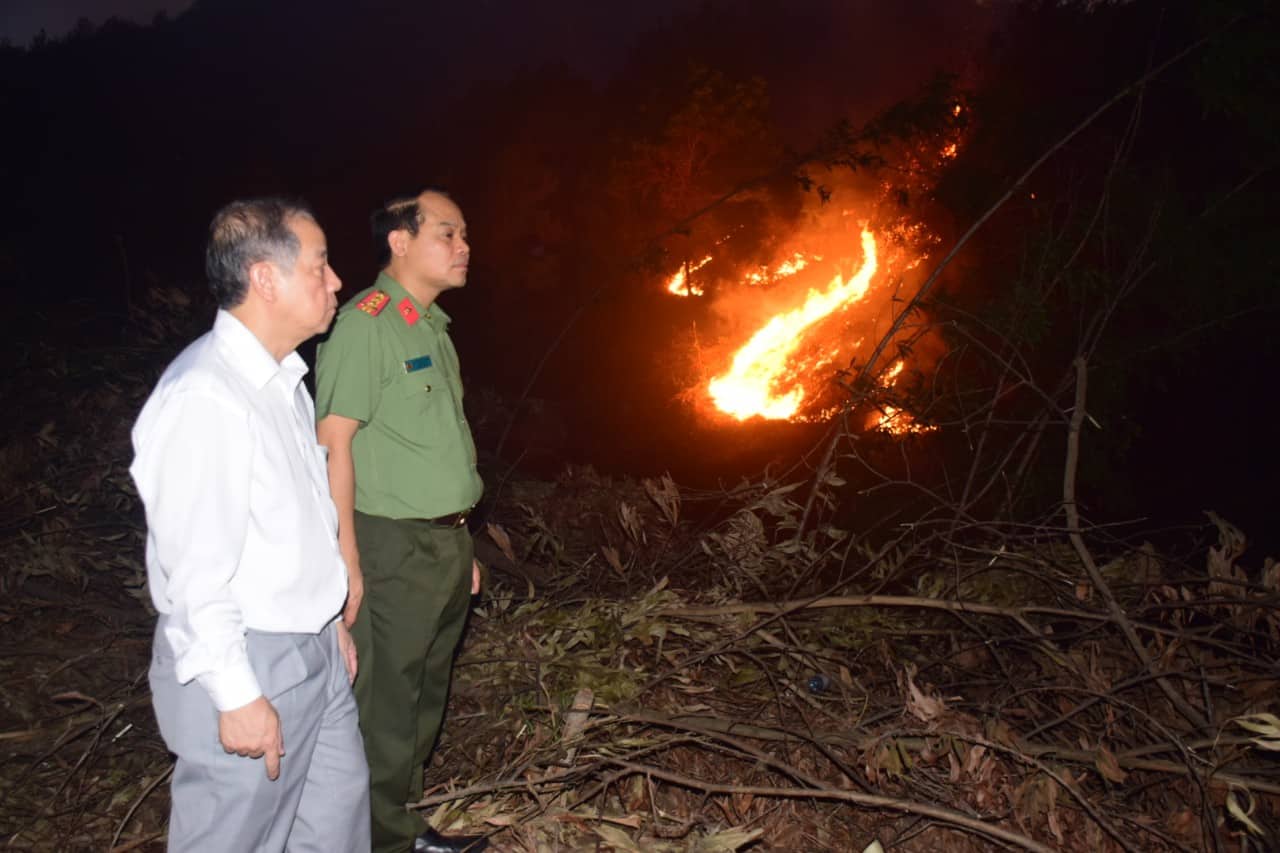 Có mặt tại hiện trường, Giám đốc Công an tỉnh Nguyễn Quốc Đoàn chỉ đạo phải có loa công suất lớn, máy bộ đàm để liên lạc trong quá trình chữa cháy, tránh tình trạng người chỉ đạo, hướng dẫn dù nói lớn nhưng lực lượng tham gia chữa cháy trên khu vực rộng lớn không nghe rõ.