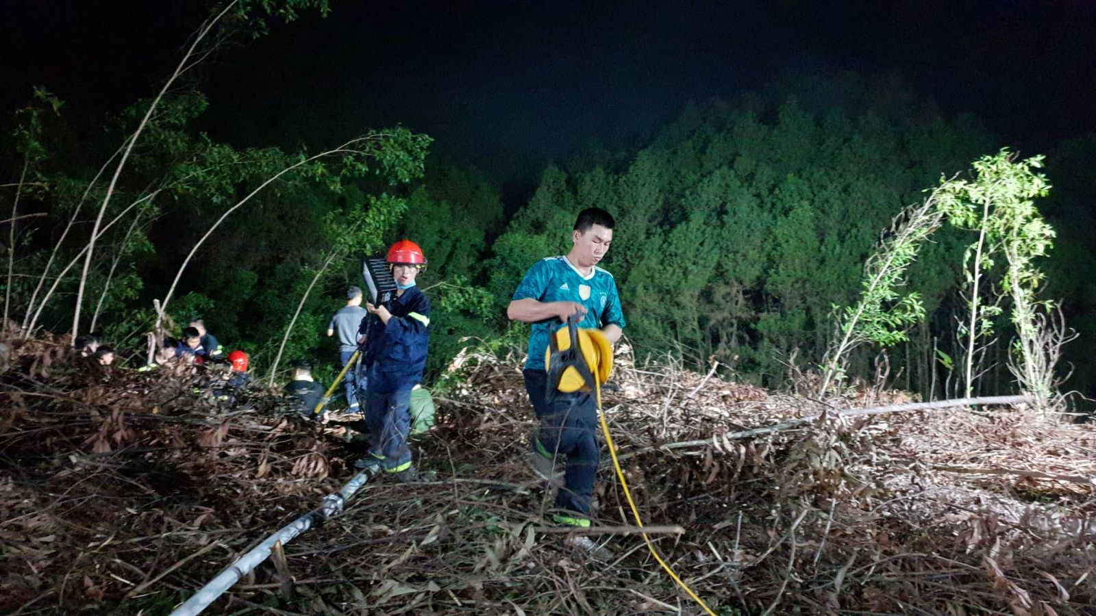 Tại hiện trường, cùng với việc sử dụng máy thổi, cành xanh, dụng cụ để dập lửa, 12 xe chữa cháy cũng được huy động. Anh Thảo, Trưởng phòng Kỹ thuật Khu du lịch Về nguồn cho biết: "Khu du lịch nằm bên cạnh khu vực cháy rừng nên chúng tôi rất lo lắng, ngay khi các xe chữa cháy đến đã sử dụng nguồn nước chữa cháy của đơn vị cùng nguồn nước lấy từ phía chùa Thiên Mụ, góp phần khống chế đám cháy".