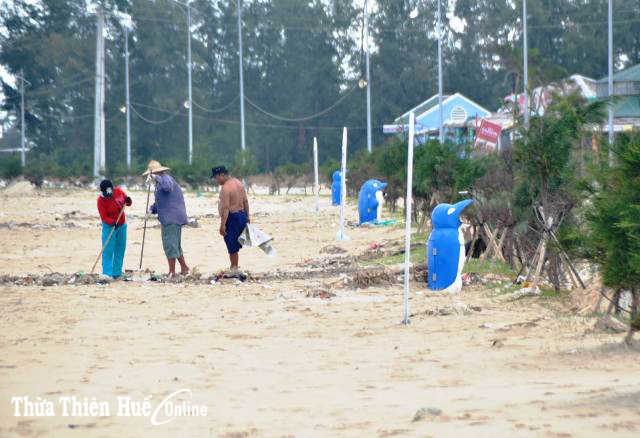 Sau khi san ủi cát, bãi biển Thuận An được chỉnh trang, dọn rác