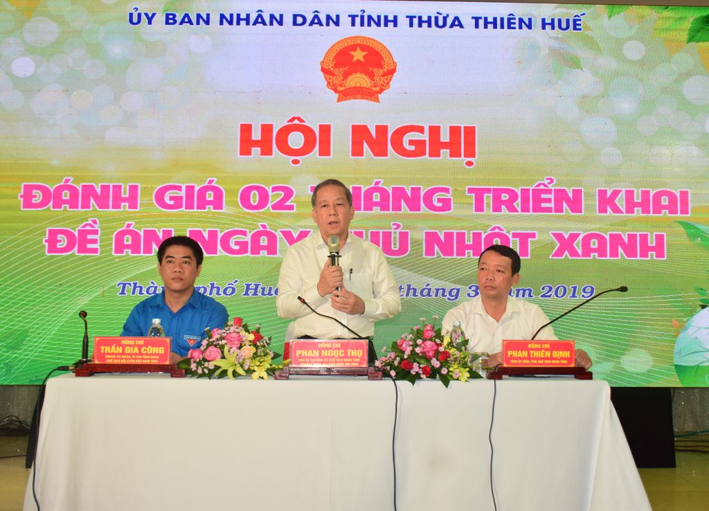 HNN.VN - Tại hội nghị sơ kết 2 tháng triển khai Đề án “Ngày Chủ nhật xanh” diễn ra sáng 21/3, Phó Bí thư Tỉnh ủy, Chủ tịch UBND tỉnh, Trưởng đoàn ĐBQH tỉnh Phan Ngọc Thọ gửi đi thông điệp “Nhặt một cọng rác, bạn đã góp phần làm cho Huế đẹp hơn”.