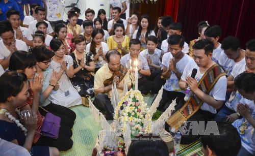 Lưu sinh viên Lào, Trường Cao đẳng Sư phạm Điện Biên (Điện Biên) đón Tết Bunpimay cổ truyền của dân tộc. Ảnh: Xuân Tư/TTXVN