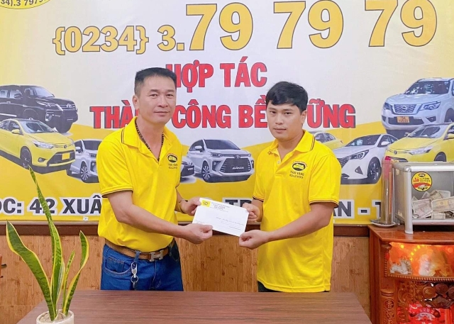 HNN.VN - Chiều 5/12, Ông Giáp Hòa, Giám đốc Công ty Taxi Vàng - Chi nhánh Huế cho biết, đơn vị vừa tổ chức khen thưởng đối với tài xế Lê Văn Cương (SN 1991) để tuyên dương nghĩa cử cao đẹp của tài xế này.