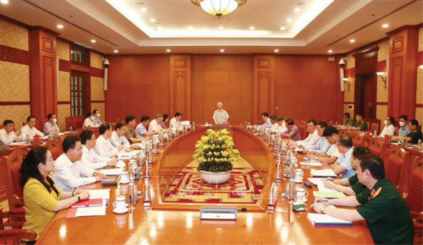 Tổng Bí thư Nguyễn Phú Trọng chủ trì cuộc họp của Thường trực Ban Chỉ đạo Trung ương về phòng, chống tham nhũng, tiêu cực hồi tháng 4/2022. Ảnh: TTXVN