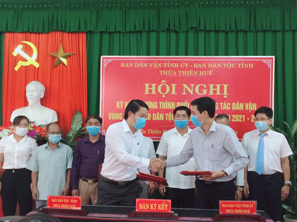 Theo đó, hai đơn vị thống nhất đẩy mạnh hơn nữa công tác vận động đồng bào DTTS, phấn đấu giảm dần số xã, thôn đặc biệt khó khăn; tuyên truyền, vận động Nhân dân vùng đồng bào DTTS không nghe theo kẻ xấu, xúi giục chống phá Đảng, Nhà nước; tăng cường đào tạo, bồi dưỡng đội ngũ cán bộ là người đồng bào DTTS; giải quyết các vấn đề mới nảy sinh…