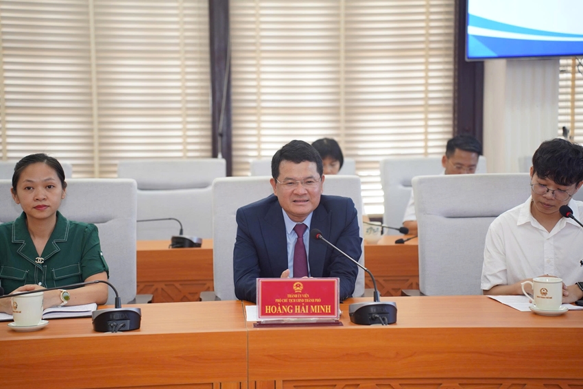 | Ông Hoàng Hải Minh, Phó Chủ tịch UBND thành phố trao đổi tại lễ ký kết |