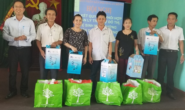 Trao các vật phẩm tuyên truyền thực hiện đề án Ngày chủ nhật xanh cho các tổ dân phố về trao lại các các hộ dân trên địa bàn phường