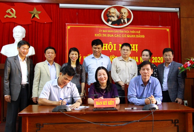 Theo đó, Khối thi đua các Cơ quan Đảng gồm 9 đơn vị: Báo Thừa Thiên Huế; Trường Chính trị Nguyễn Chí Thanh; Ban Tổ chức Tỉnh ủy; UBKT Tỉnh ủy; Ban Tuyên giáo Tỉnh ủy; Văn phòng Tỉnh ủy; Ban Nội chính Tỉnh ủy; Khối các Cơ quan và Doanh nghiệp tỉnh; Ban Dân vận Tỉnh ủy tập trung thảo luận, đóng góp ý kiến và thống nhất ký kết giao ước thi đua năm 2020 với 6 nội dung quan trọng.