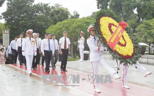 Tiếp đó, Đoàn đại biểu Ban Chấp hành Trung ương Đảng, Chủ tịch nước, Quốc hội, Chính phủ, Ủy ban Trung ương Mặt trận Tổ quốc Việt Nam đã đến đặt vòng hoa và tưởng niệm các Anh hùng Liệt sỹ tại Đài tưởng niệm các Anh hùng Liệt sỹ, đường Bắc Sơn, Hà Nội.