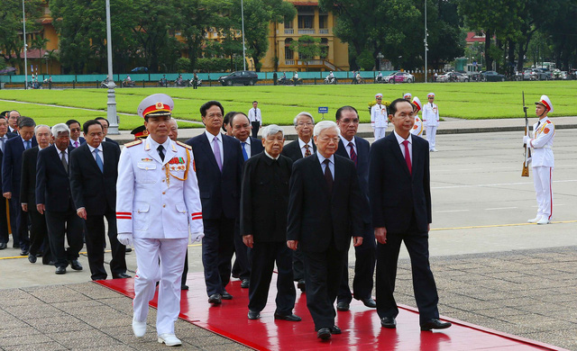 Đoàn đại biểu Đảng, Nhà nước đặt vòng hoa và vào Lăng viếng Chủ tịch Hồ Chí Minh. Ảnh: Dương Giang - TTXVN