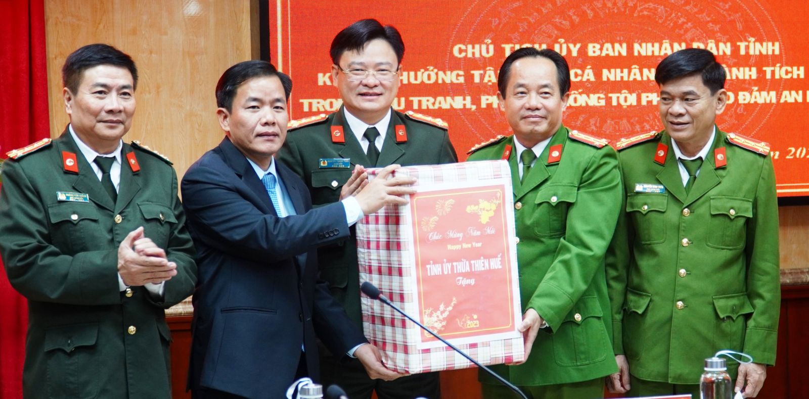 Đại tá Nguyễn Thanh Tuấn, Giám đốc Công an tỉnh cảm ơn sự quan tâm của Tỉnh ủy, HĐND, UBND, Ủy ban MTTQ tỉnh, đồng thời cho biết, tập thể Đảng ủy, Ban Giám đốc Công an tỉnh, lãnh đạo công an các đơn vị, địa phương sẽ tiếp tục phát huy tinh thần đoàn kết; tiếp thu, lĩnh hội các ý kiến chỉ đạo của Chủ tịch UBND tỉnh để quyết tâm hoàn thành xuất sắc nhiệm vụ được giao trong năm 2023 và góp phần xây dựng Thừa Thiên Huế trở thành thành phố trực thuộc Trung ương trong thời gian đến.