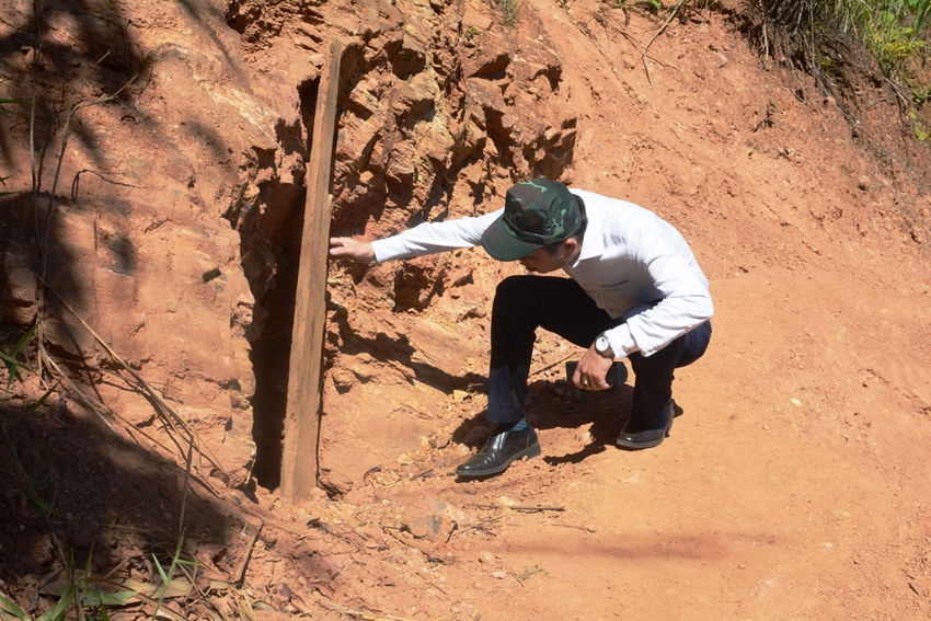 Tuy nhiên, tại thời điểm đoàn công tác đến hiện trường thì không còn tình trạng khai thác khoáng sản trái phép mà chỉ còn những dấu vết khai thác đã cũ. Khu vực khai thác có một số hầm, hố đào lấy đất đá; có mương dân dùng để khai thác bằng phương pháp bơm áp lực cao tạo thành từ khu vưc khai thác về khe suối, có một số máng gỗ bị hỏng và lán trại đã bị ̣phá hủy. Khu vực khai thác có dấu hiêu sạt trượt đất, độ dốc lớn.